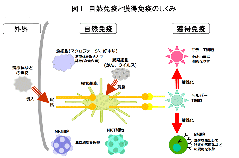 免疫功能分兩個不分組成,“自然免疫”和“獲得性免疫”。