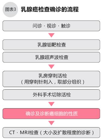 經(jīng)過視診、觸診、鉬靶、超聲波等影像檢查,最后通過顯微鏡下觀察癌變組織的病理診斷才能確診乳腺癌。當(dāng)懷疑乳腺癌時,請先通過問診、視診、觸診、鉬靶、超聲波檢查確認(rèn)是否存在病變或腫塊。醫(yī)師診斷時要先觀察乳房,查看乳頭是否有分泌物,乳房皮膚上是否有濕疹,觸摸確認(rèn)腫塊的位置,大小和硬度,頸下和腋下淋巴結(jié)有無腫大等(圖3)。