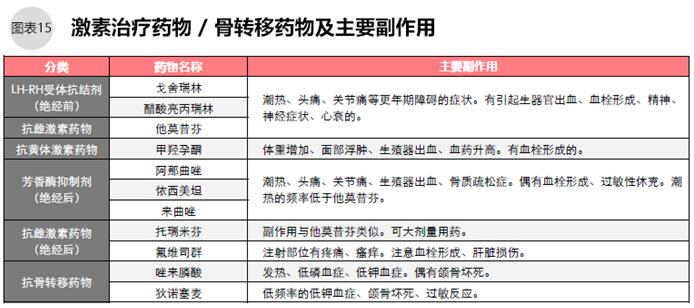 抗激素藥物的副作用比抗癌劑小,副作用包括紅潮、熱潮、更年期障礙、性器官出血、精神神經(jīng)癥狀等,偶有引起血栓形成,肺栓塞、腦梗、心梗的。LH-RH抗結(jié)劑、芳香酶抑制劑容易引起關(guān)節(jié)疼痛、骨質(zhì)酥松。