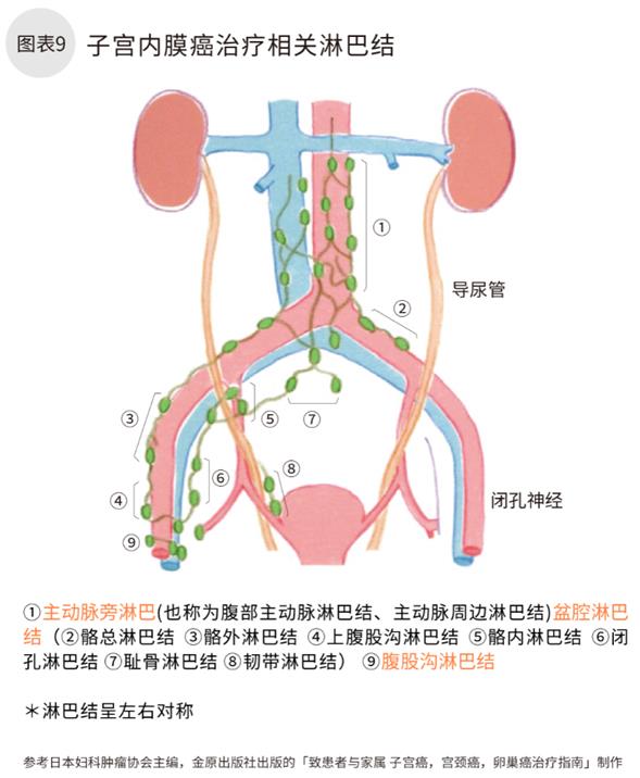 無論肌層浸潤程度如何,盆腔主動脈旁淋巴結皆需要切除。內膜樣高分化,中分化腺癌,手術中肉眼所見肌層浸潤超過二分之一時也需切除。