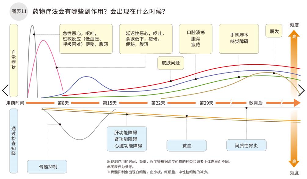 化療藥物雖然看上去差不多,但是藥物的種類不同副作用也不同,個體差異很大。除了自己能感受到的,還有必須通過檢查才知道的副作用。有些化療藥物用了馬上就會出現副作用,而有些則會出現在數月以后。