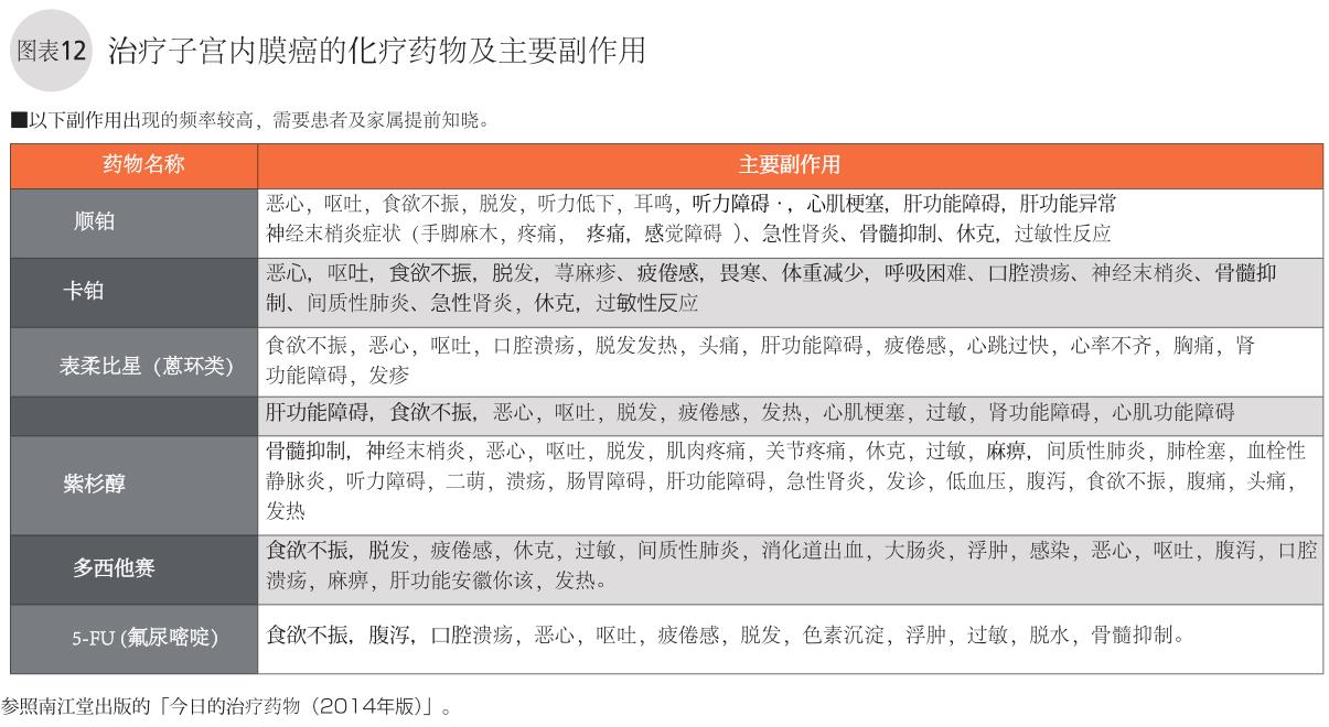 子宮癌的藥物治療有化療和內分泌治療兩種方式。乳腺癌等一部分癌癥有阻礙特異抗原的靶向藥,但子宮癌暫時還沒有靶向藥可以用來治療。下面我們來細說下化療的副作用。