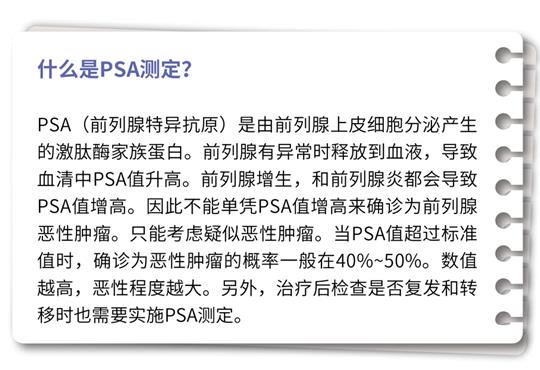 其中最便捷的篩查方式是PSA測(cè)定。雖然不能單憑此確診是否為惡性腫瘤,但可用來確認(rèn)是否有患病的可能性,是初步篩查中最適當(dāng)?shù)臋z查方式。通過血液檢查即可測(cè)定,即使沒有任何自覺癥狀,可作為健康體檢的一個(gè)項(xiàng)目。事實(shí)上,由于PSA測(cè)定的普及,前列腺癌的早期發(fā)現(xiàn)率已經(jīng)有很大提高。