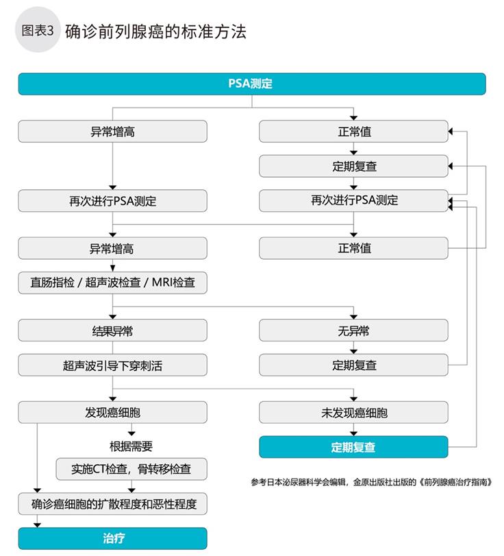 通常無明顯癥狀的情況下,首先進(jìn)行PSA測(cè)定,根據(jù)測(cè)定值再選擇直腸指檢,超聲波檢查,MRI檢查。通常在健康體檢時(shí),為了提高檢查的精度,同時(shí)進(jìn)行PSA測(cè)定和直腸指檢。